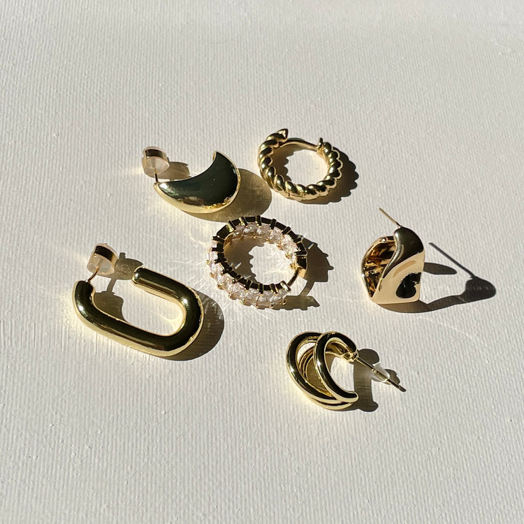 Our earrings collection brings you every single earring you might need, from dangles, hoops, huggies to studs, and of course ear cuffs. We have all the earrings for each style, gold, pearls & MORE.