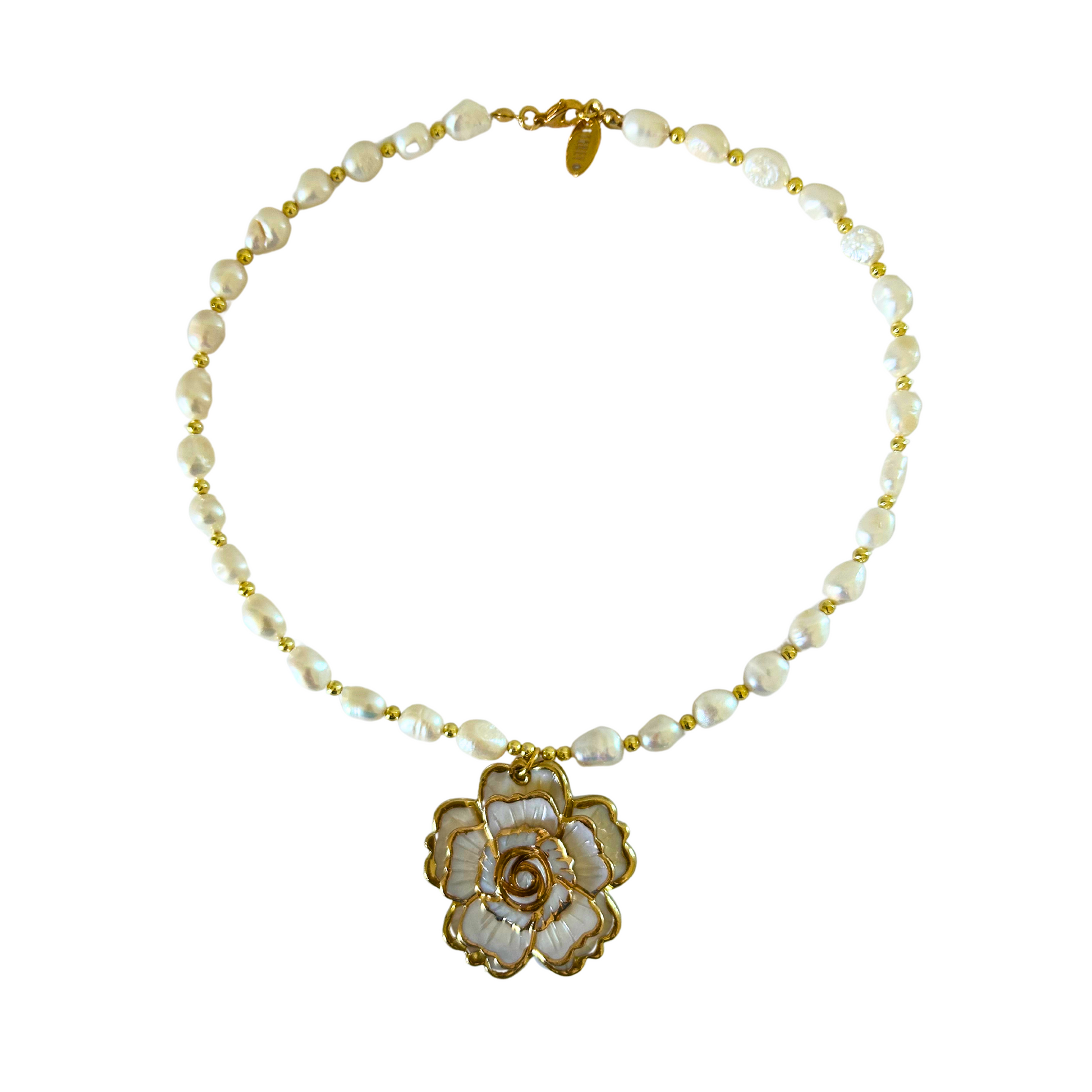 Pearl necklace with shell flower
