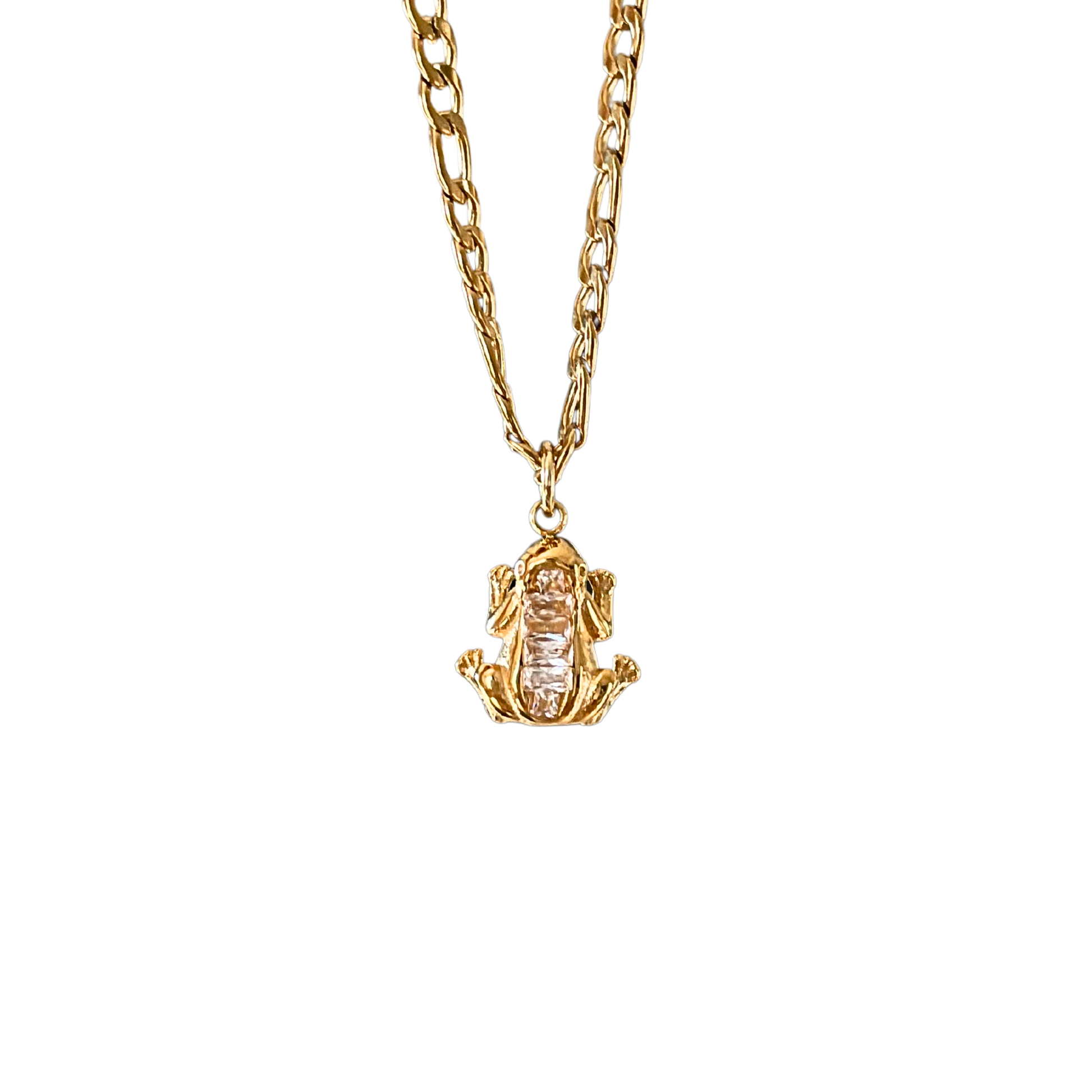 Coquí with cubic zirconia details necklace in gold plated stainless steel